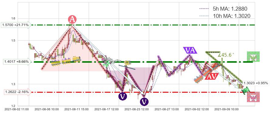 ♘ 阻力价格位1.4017,可信任强度94.45%,距离最后交易2021-09-09 14:00形成的收盘价格1.2900相差 +8.66%