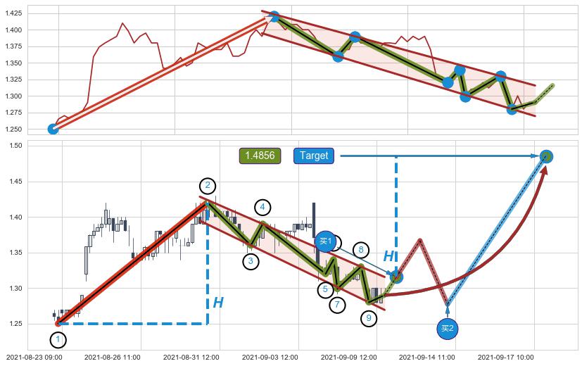 ➢ AI预测: 假定反转如期而至,第❸价格目标位置(09-15:10, 1.4200)