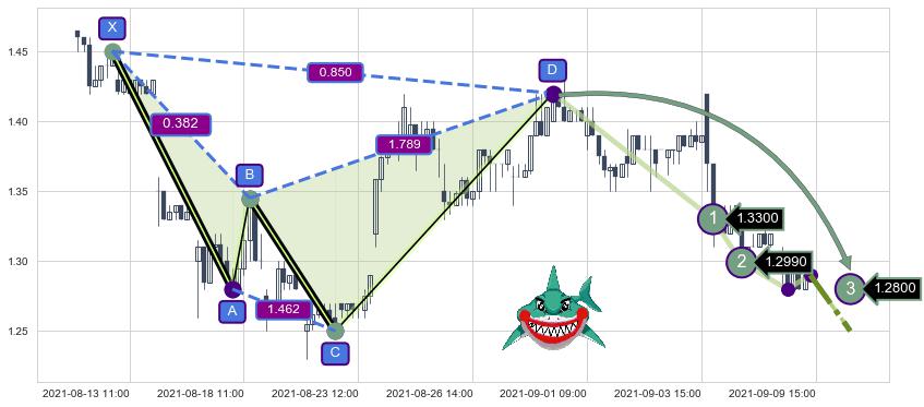 ➣ 已完成【鲨鱼】形态起点X: 08-12:15, 终点D: 08-31:09, 共78交易小时