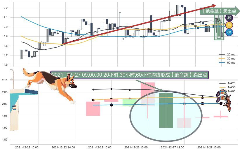 ⚀ 2021-12-27 09:00:00小时显现 20小时-30小时-60小时均线 【绝命跳】卖出点 看空信号,后市看跌,卖出