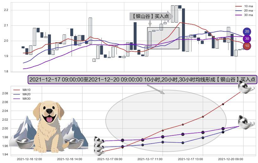 ⚀ 2021-12-17 10:00:00-小时至2021-12-20 09:00:00-小时显现 10小时-20小时-30小时均线 【银山谷】买入点 看多信号,后市看涨,买入