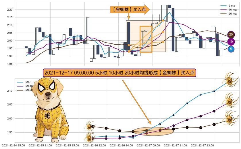 ⚀ 2021-12-17 09:00:00小时显现 5小时-10小时-20小时均线 【金蜘蛛】买入点 看多信号,后市看涨,买入
