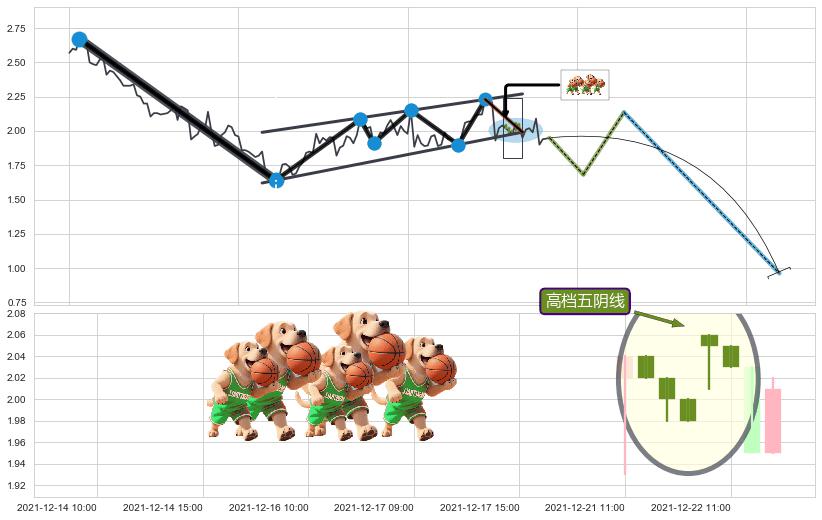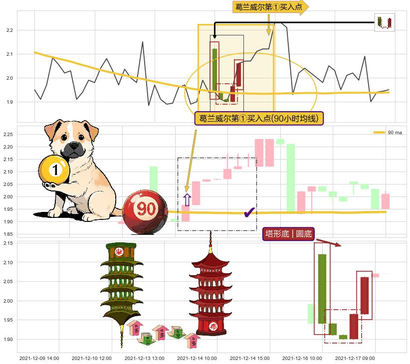 ♘ 在最后的下跌阶段2021-07-14 09:00至2021-12-13 15:00,存在 破位边缘的阻力位 ,阻力价格1.8879,可信任强度81.02%,其距离最后价格1.9500相差 -3.19%
