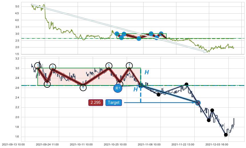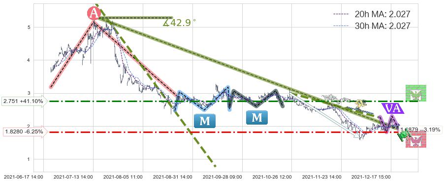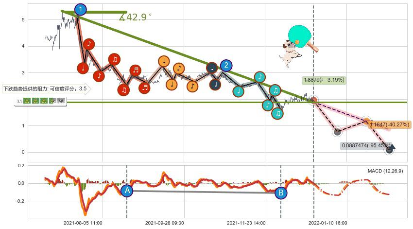 ♘ 阻力价格位2.751,可信任强度64.18%,距离最后交易2021-12-27 15:00形成的收盘价格1.9500相差 +41.10%