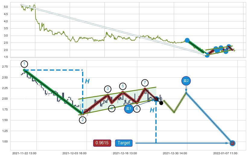 🦴 长线均值回复组合短线趋势跟踪[强阻力信号]2021-07-14 09:00-2021-12-13 15:00下跌趋势依然成立(下跌趋势跟踪依然存在),短线价格略微上行反弹(均值回复猜想),即将接近下跌趋势提供的未破位阻力价格:1.8879。
