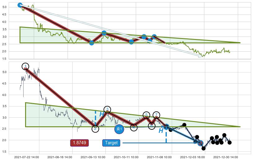 ➣ 最小中继整理跌幅→𝐇: 0.35400 (上平行阻力线与下平行支撑线的垂直距离)