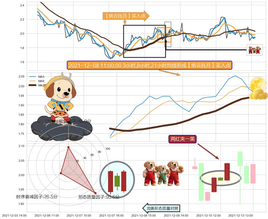 ➢ 最后的上涨趋势2021-12-03 12:00至2021-12-20 10:00:存在破位迹象,后续小调整或者反转下跌