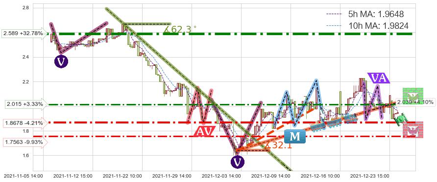 ✂️ 2021-12-03 12:00-2021-12-20 10:00上升趋势存在反转[风险],其原上升趋势的支撑位(2.030)已破位[强阻力信号],原上升趋势角度: 32.1˚