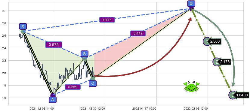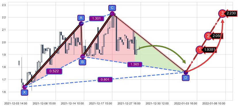 ➣ D点拟合预测价格1.7576,距离最后交易收盘价格1.9500相差 -9.86%