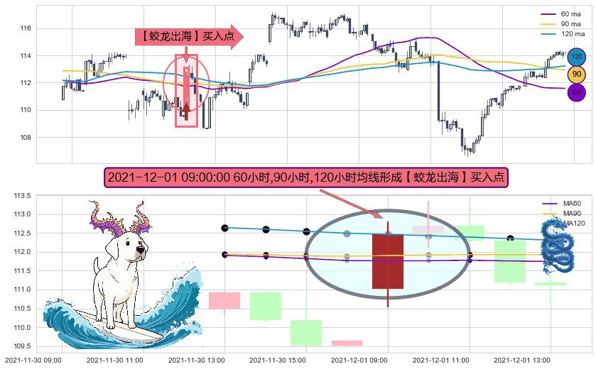 形态多维评估: ⚀ 2021-12-01 09:00:00小时显现 60小时-90小时-120小时均线 【蛟龙出海】买入点 看多信号,后市看涨,买入