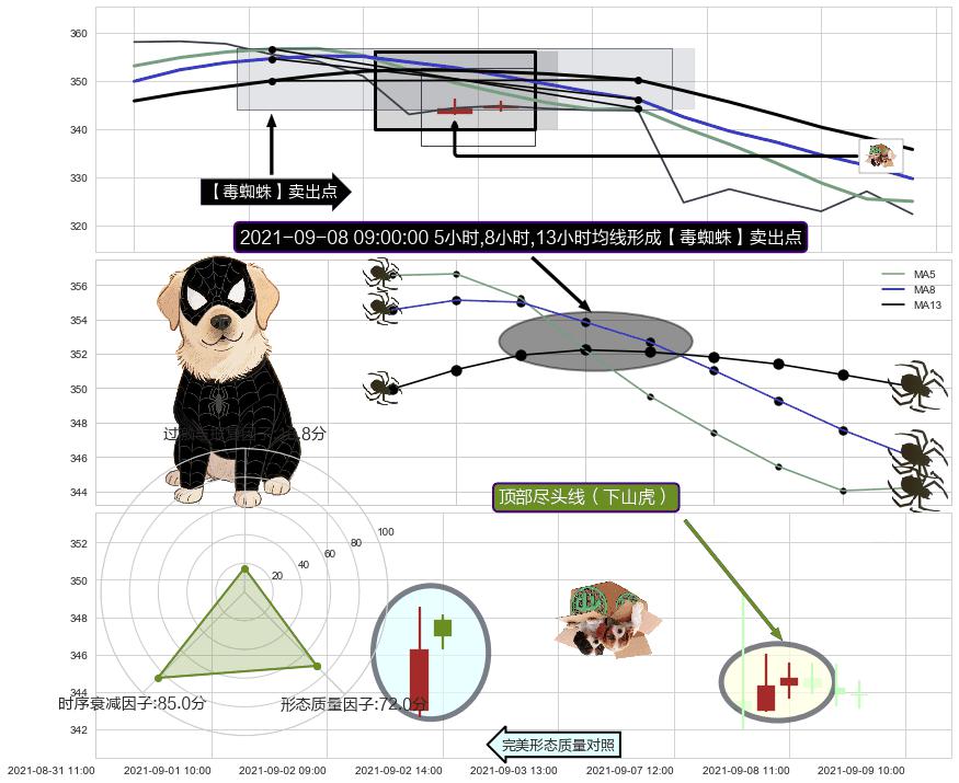 | 5 🅚:【毒蜘蛛】卖出点 ➕ 📈:趋势线上涨趋势原支撑已出现破位,猜想原支撑已变为阻力位(大周期均值回复) ☞ 看空信号 ⇥ 【均线】交织【图形】⇥ 综合量化分数: 40 | > |