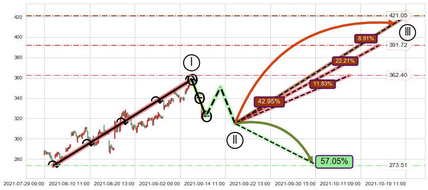➢ 循环浪继续向上【最低】位置(10-07:13, 362.40),匹配聚类样本比例27.54%, 可能性概率11.83%