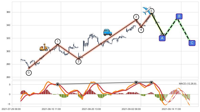➣ 第一, 三, 五浪上涨动能逐渐【增强变大】,趋势不断加固