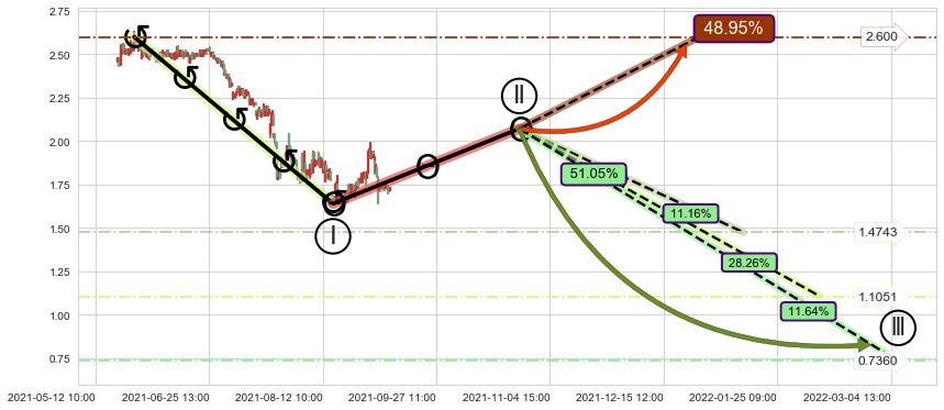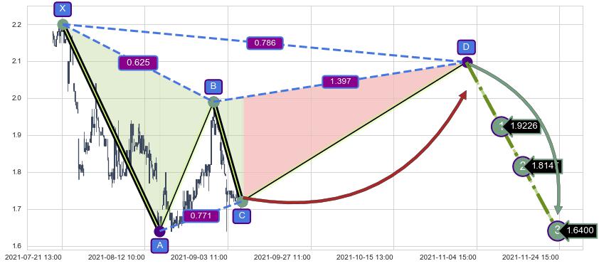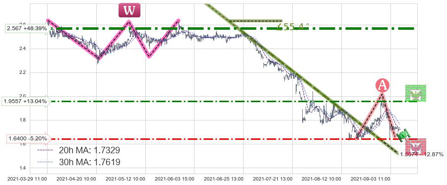 ➣ D点拟合预测价格2.097,距离最后交易收盘价格1.7300相差 +21.23%