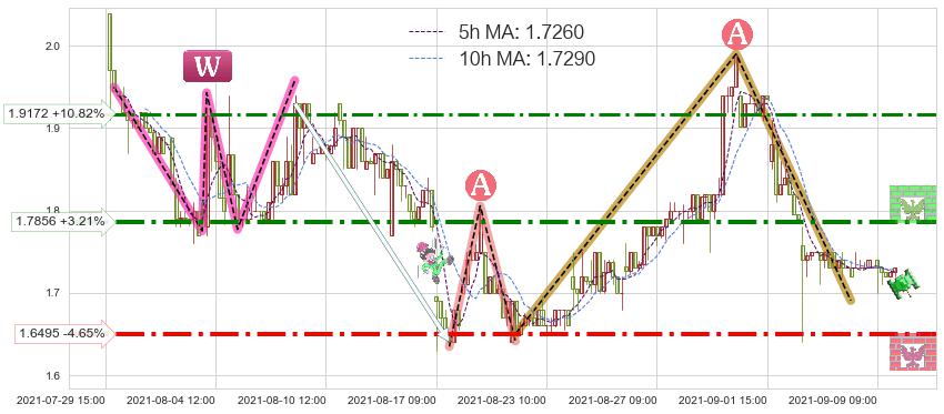 ♘ 阻力价格位1.9172,可信任强度68.91%,距离最后交易2021-09-09 14:00形成的收盘价格1.7300相差 +10.82%