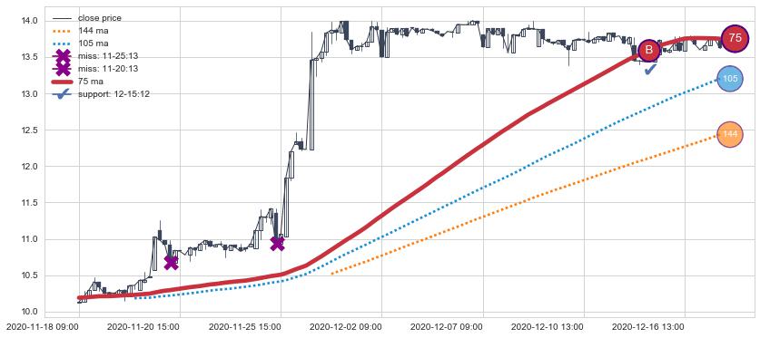 上涨趋势11-18 09:00-12-17 14:00,均线75确认关键支撑1处