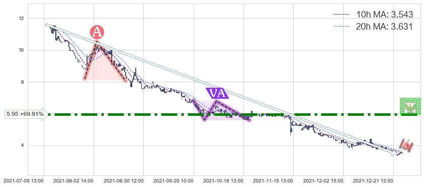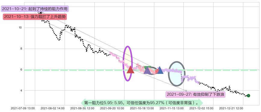 ♘ 阻力价格位5.95,可信任强度95.27%,距离最后交易2021-12-27 15:00形成的收盘价格3.500相差 +69.91%
