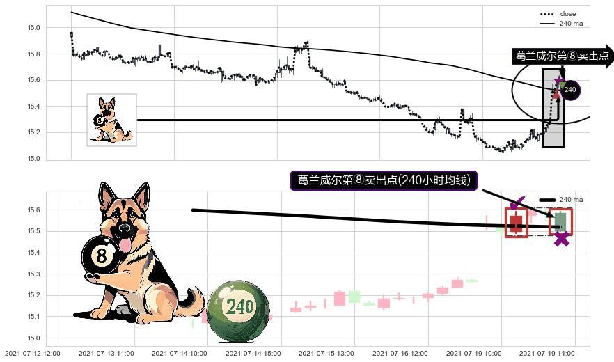 ⚀ 2021-07-19 14:00:00-小时显现 葛兰威尔均线 240小时均线 第⑧卖出点 下降趋势的中继信号,后市看跌,卖出信号