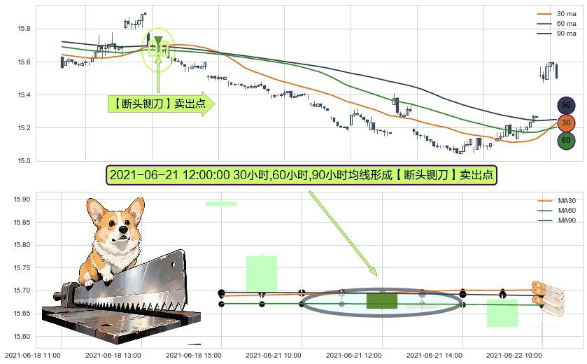 ⚀ 2021-06-21 12:00:00小时显现 30小时-60小时-90小时均线 【断头铡刀】卖出点 看空信号,后市看跌,卖出