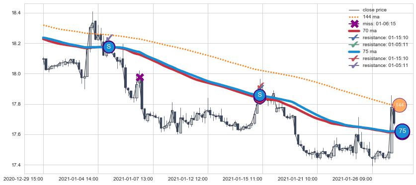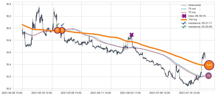 ⚂ 2021-07-14 14:00:00小时突然冒出一根大阳线,一下子顶穿三条均线且收盘价收在各条均线之上