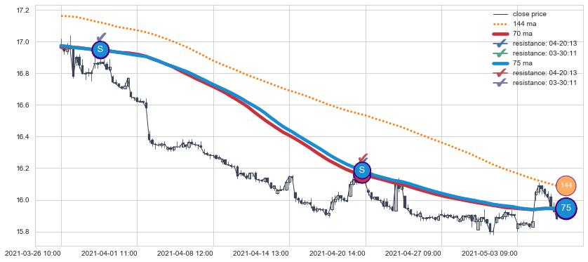 ⚃ 2021-07-14 14:00:00小时开盘价格在三条均线下收大阳线,收盘全突破均线,收盘股价上涨0.16%