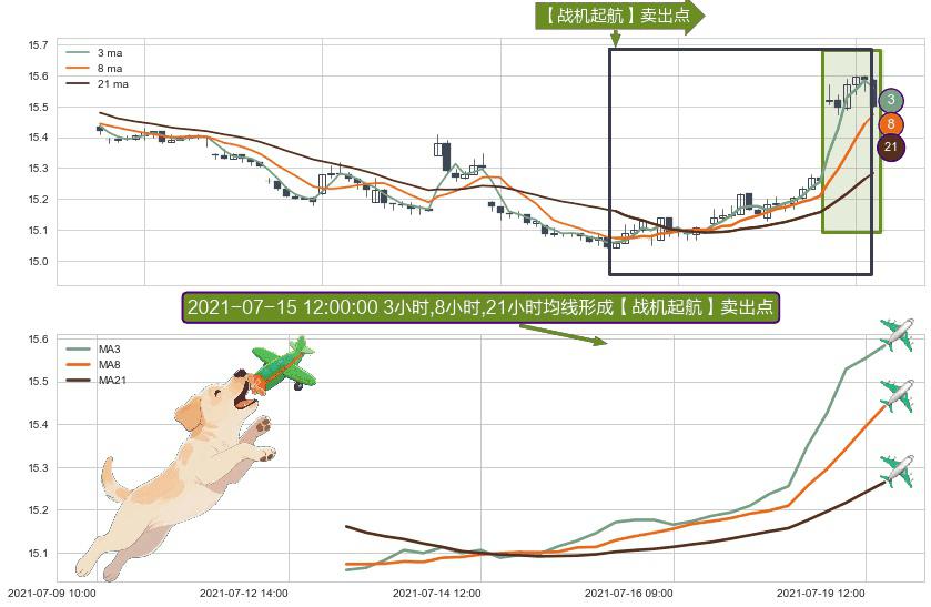 ⚀ 2021-07-13 11:00:00小时-2021-07-19 13:00:00小时显现 3小时-8小时-21小时均线 【战机起航】卖出点 看空信号,后市看跌,卖出