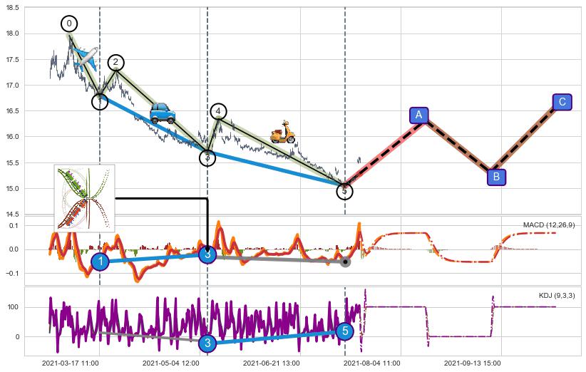 | 6 🅚:徐缓上升 ➕ 🌊:波浪理论猜想下跌浪5已形成,猜想后续形成abc反弹上涨(均值回复) ☞ 看多信号 ⇥ 【🅚线】交织【图形】⇥ 综合量化分数: 60 | > |