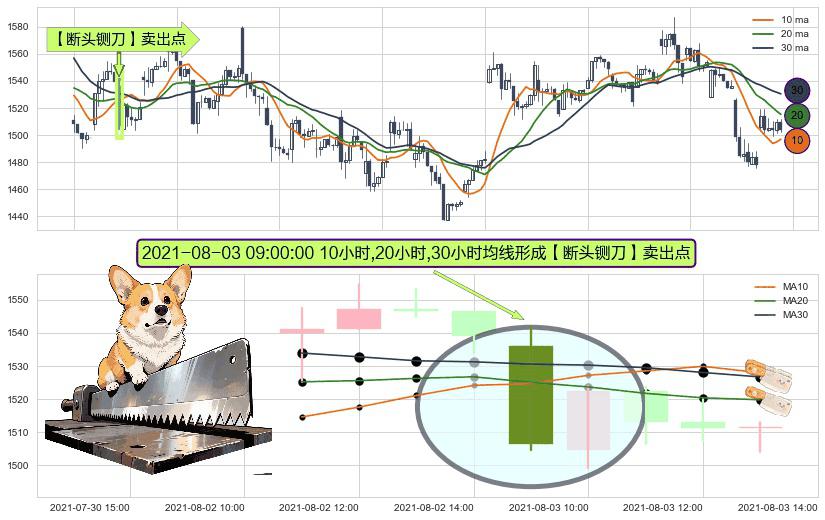 ⚀ 2021-08-03 09:00:00小时显现 10小时-20小时-30小时均线 【断头铡刀】卖出点 看空信号,后市看跌,卖出