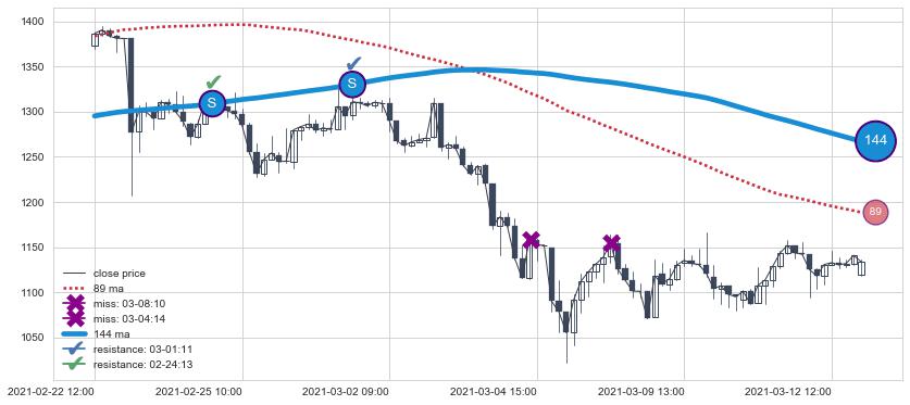 ⚁ MA3和MA8走势平行,且始终保持在短距离内,MA21始终在短中期均线上方,与短中期均线保持一定的距离,微微下行