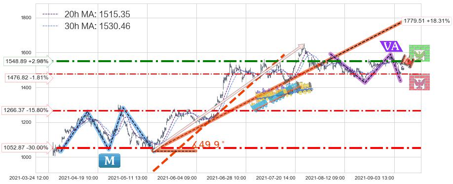 ♞ 20小时均线:1515.35,30小时均线:1530.46→ 快线<慢线