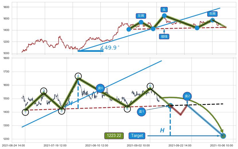➢ AI预测: 假定反转启动后, 第❷目标位置(10-08:09, 1504.86)