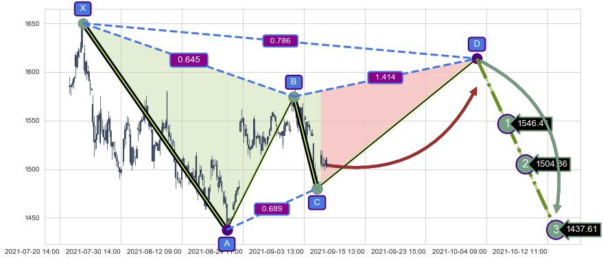➣ D点拟合预测价格1613.67,距离最后交易收盘价格1504.08相差 +7.29%