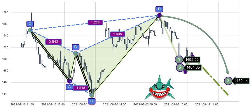 ➣ 已完成【鲨鱼】形态起点X: 08-09:14, 终点D: 09-02:11, 共106交易小时