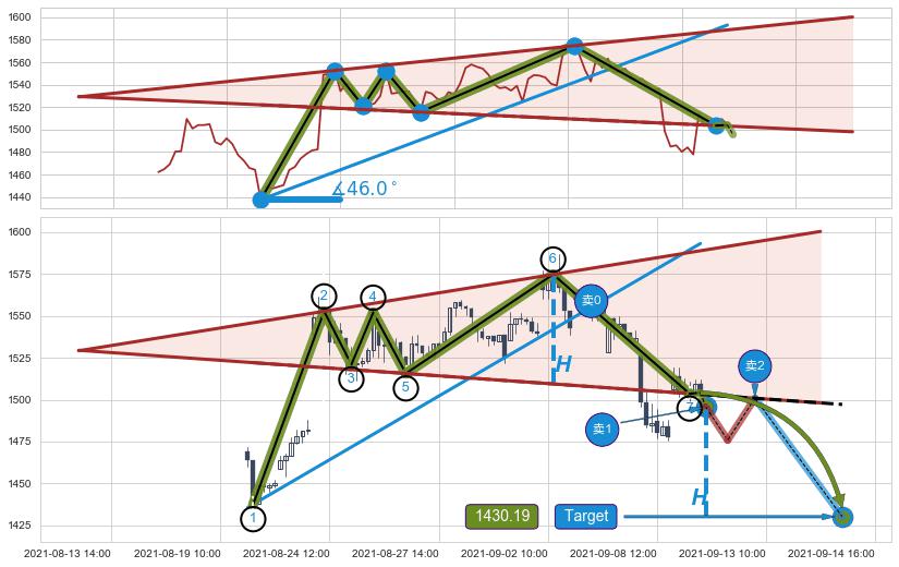 ➣ 【仅预测突破】最后价格:1504.08与预测突破价格:1495.47→【空间临近】后续最小【反转】第一目标价格→(09-14:16: 1430.19 )