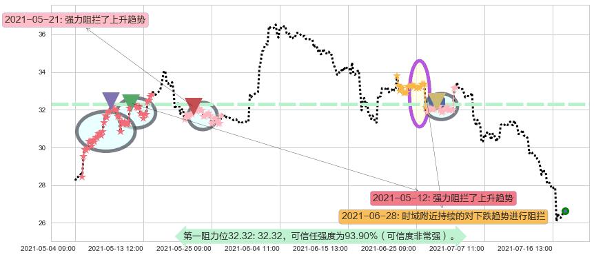 ♘ 阻力价格位32.32,可信任强度93.90%,距离最后交易2021-07-19 15:00形成的收盘价格26.65相差 +21.27%