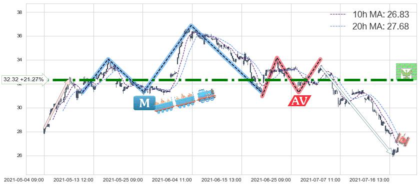 2021-06-29: 第一阻力位32.32强力阻拦了上升趋势,成功阻止了价格的继续上涨。