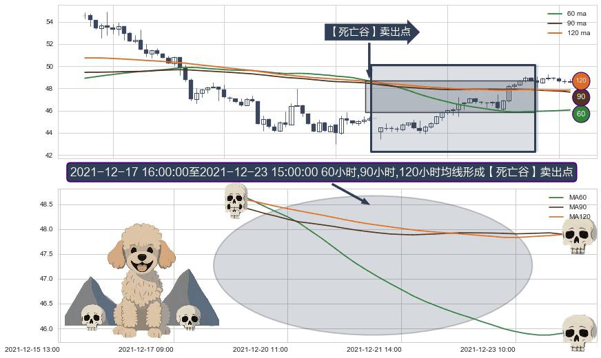 ⚀ 2021-12-20 09:00:00-小时至2021-12-23 15:00:00-小时显现 60小时-90小时-120小时均线 【死亡谷】卖出点 看空信号,后市看跌,卖出