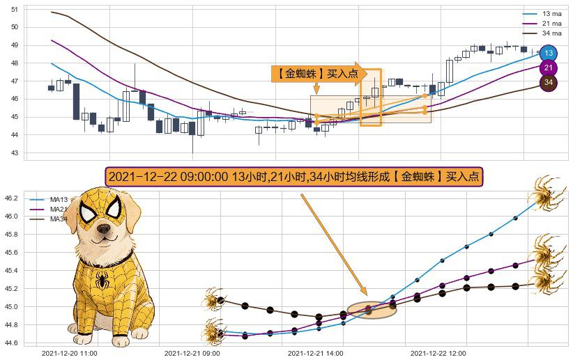⚀ 2021-12-22 09:00:00小时显现 13小时-21小时-34小时均线 【金蜘蛛】买入点 看多信号,后市看涨,买入