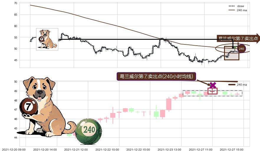 ⚀ 2021-12-27 11:00:00-小时显现 葛兰威尔均线 240小时均线 第⑦卖出点 下降趋势的中继信号,后市看跌,卖出信号