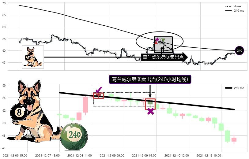 ⚀ 2021-12-09 13:00:00-小时显现 葛兰威尔均线 240小时均线 第⑧卖出点 下降趋势的中继信号,后市看跌,卖出信号