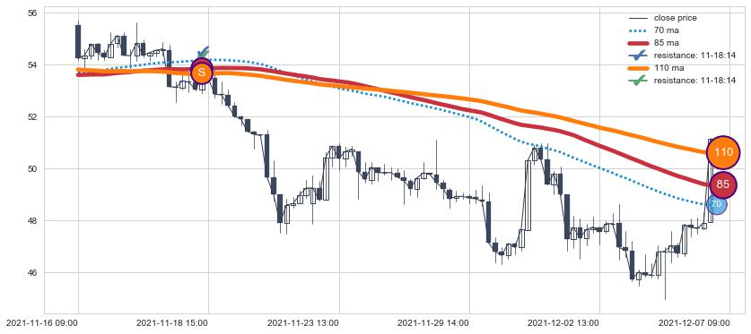 ⚂ 2021-12-08 12:00:00-小时均线向上突破,2021-12-09 13:00:00-小时重新下穿均线破位,均线阻力再次生效