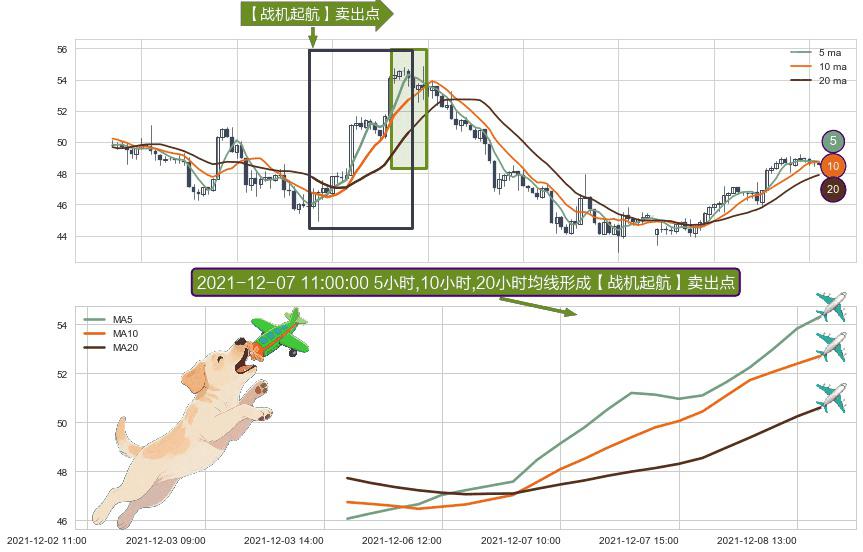 ⚀ 2021-12-03 15:00:00小时-2021-12-08 14:00:00小时显现 5小时-10小时-20小时均线 【战机起航】卖出点 看空信号,后市看跌,卖出
