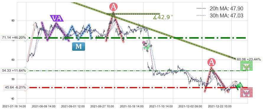 ♘ 阻力价格位54.33,可信任强度46.08%,距离最后交易2021-12-27 15:00形成的收盘价格48.66相差 +11.64%