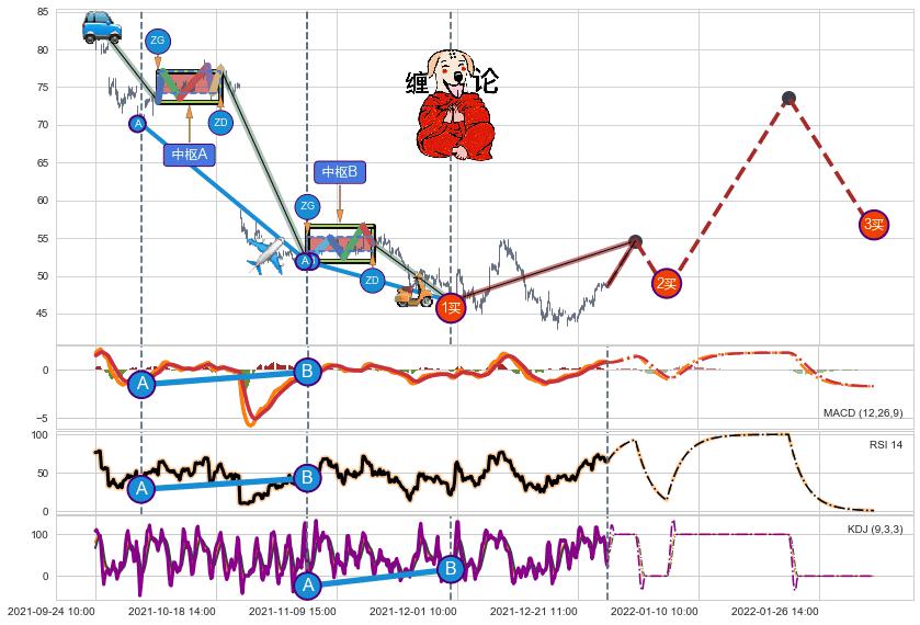 | 3 🅚:【蛟龙出海】买入点 ➕ 🌊:波浪理论猜想下跌浪5已形成,猜想后续形成abc反弹上涨(均值回复) ☞ 看多信号 ⇥ 【均线】交织【图形】⇥ 综合量化分数: 58 | > |