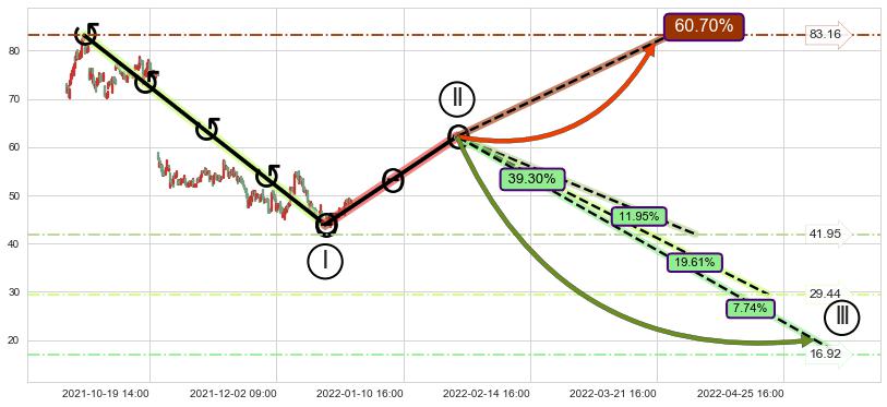 ➢ 高概率大级别循环下跌浪被破坏,反转向上(突破5浪起点)概率60.70%