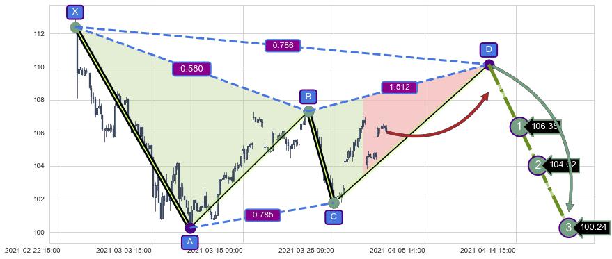 ➣ D点拟合预测价格110.13,距离最后交易收盘价格106.04相差 +3.86%