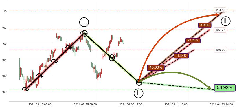 ➣ 循环浪继续向下【平均值】位置(04-15:10, 95.72),匹配聚类样本比例51.72%, 可能性概率22.53%