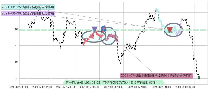 2021-08-30: 第一阻力位51.93起到了持续的阻力作用,有效地促进了价格的回落。