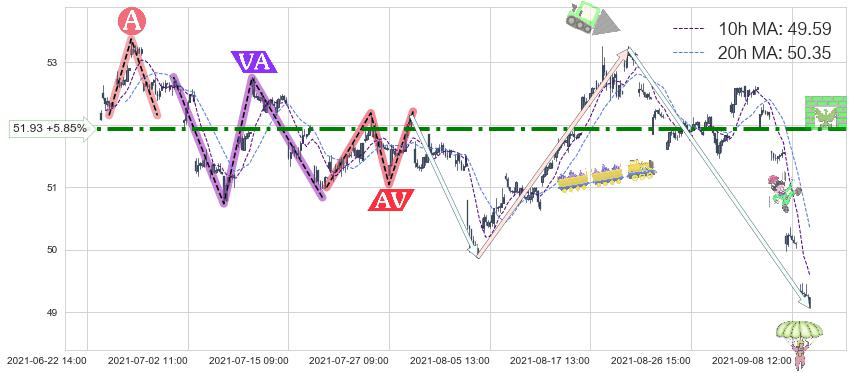 2021-07-23: 第一阻力位51.93强力阻拦了上升趋势,成功阻止了价格的继续上涨。