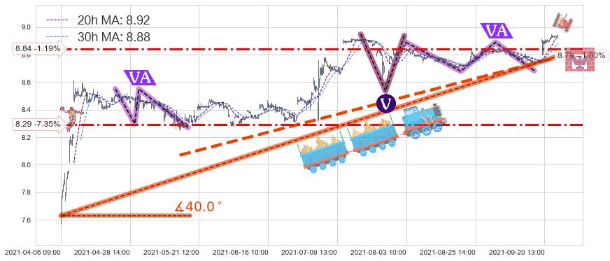 ♞ 20小时均线:8.92,30小时均线:8.88→ 快线>慢线